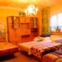 Квартира с тремя комнатами . В большой комнате расположена двуспальная кровать, шкаф. В детской комнате есть диван-кровать, письменный стол со стулом, шкаф.